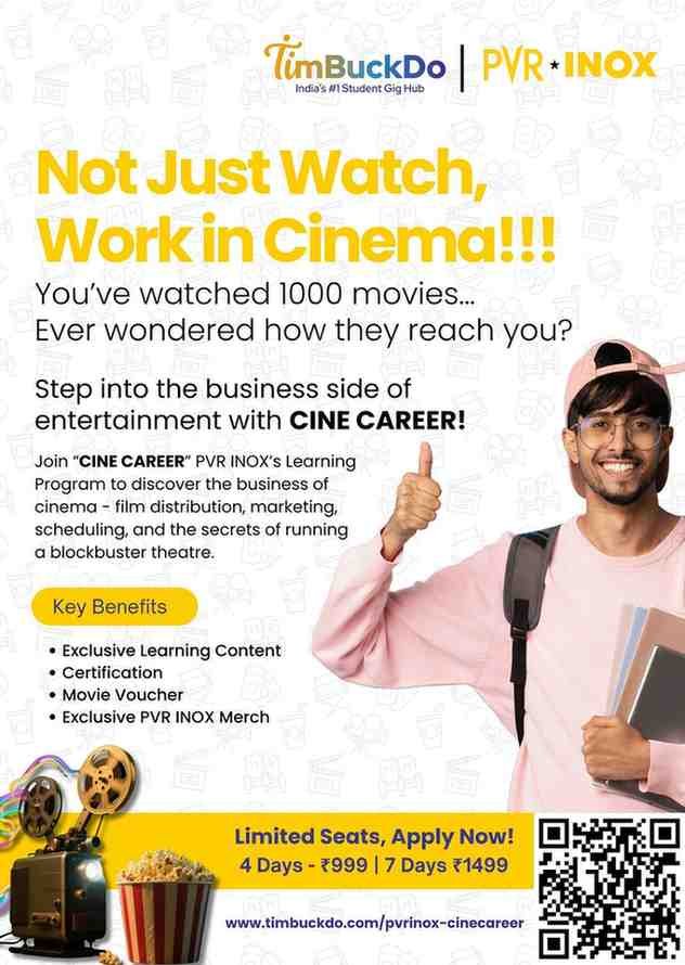 Expressing her views, Ms Mythri Kumar, Co-Founder of TimBuckDo shares, Cine Career is a powerful step forward in our mission to enhance employability for India’s youth. Students often consume cinema but rarely understand the scale, systems, and strategy behind it. This isn’t just a course, it is a runway for youth to launch their careers with real experience. TimBuckDo is proud to bring Cine Career to students giving confidence, clarity and actual skill sets to students poised to enter the workforce.” Through this partnership with PVR INOX, we’re giving students real industry immersion, not just classroom theory. We’re excited to empower thousands of young people with skills that truly make them workplace-ready.”